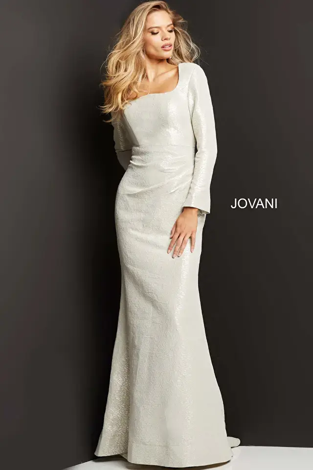 Jovani Ivory Long Sleeve Sheath Bridal Dress - JB42297